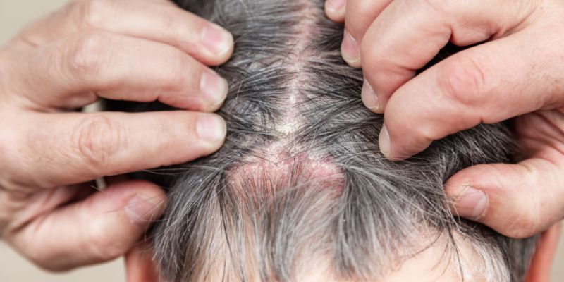 It looks like psoriasis. It is a common condition that causes red, itchy, and dryness on the scalp. People experience discomfort due to seborrheic dermatitis.